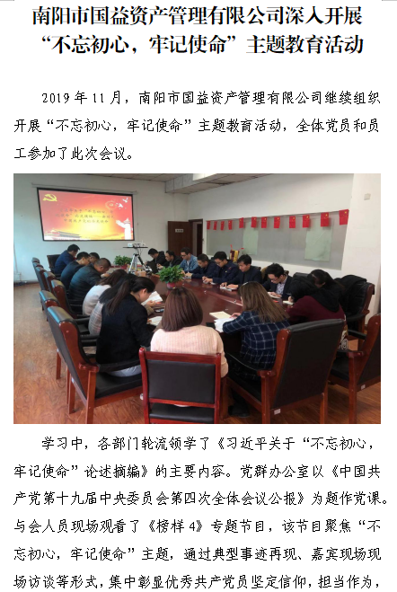 南陽(yáng)市國(guó)益資產(chǎn)管理有限公司深入開(kāi)展“不忘初心,牢記使命”主題教育活動(dòng)